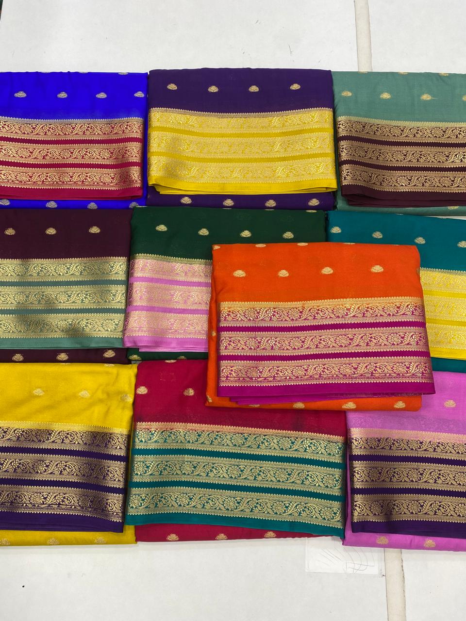 Product Description: Crepe Georgette Butta Saree Contrast Butta blouse with border