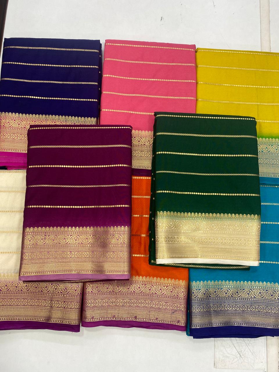 Product Description: Crepe Georgette Lines Saree Contrast Lines blouse with border