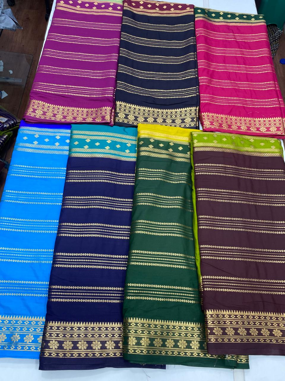 Product Description: Crepe Half And Half Saree Contrast Half Butta Half Lines Blouse