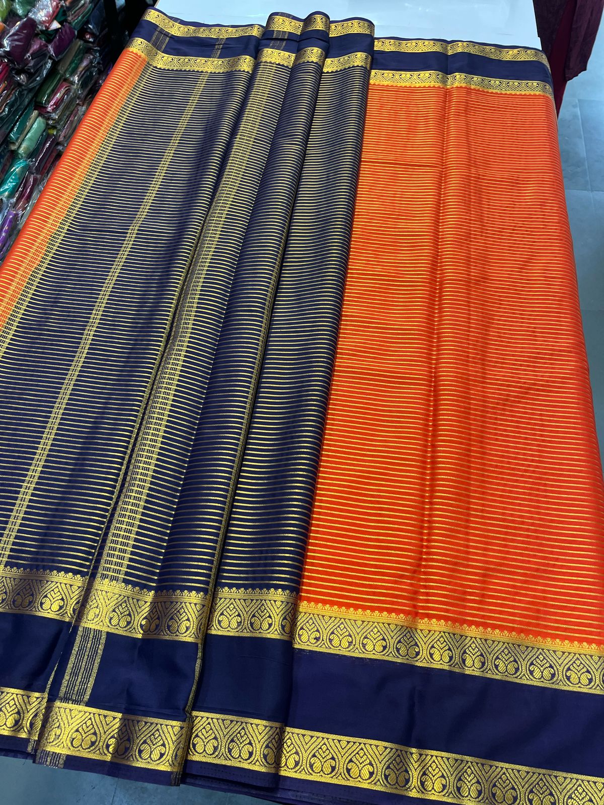 Product Description: Crepe Lines Saree With Contrast Blouse