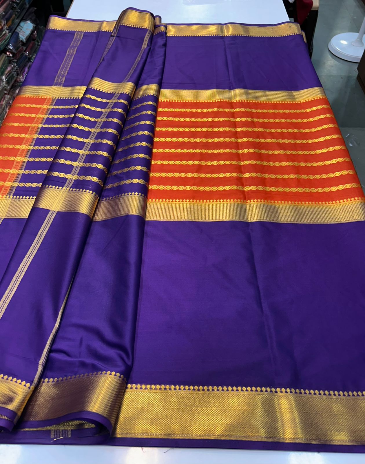Crepe Lines Saree With Contrast Plain Blouse (2439A)