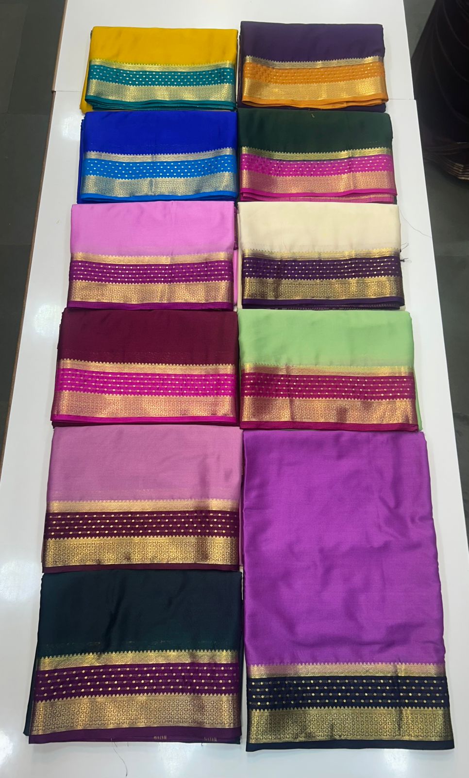 Product Description: Crepe Premium Saree Gold Jari Border With Contrast Plain Blouse