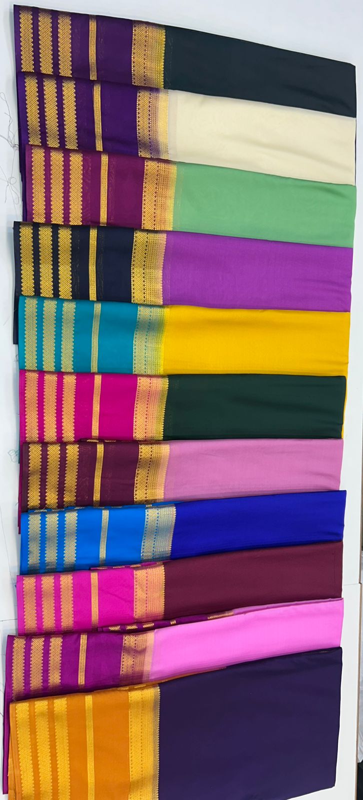 Product Description: Crepe Premium Saree Gold Jari Big Border With Contrast Plain Blouse