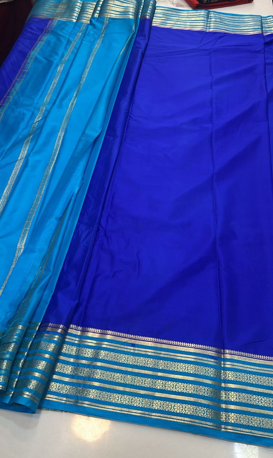 Crepe Royal Blue Saree With Contrast Plain Blouse (2426C)