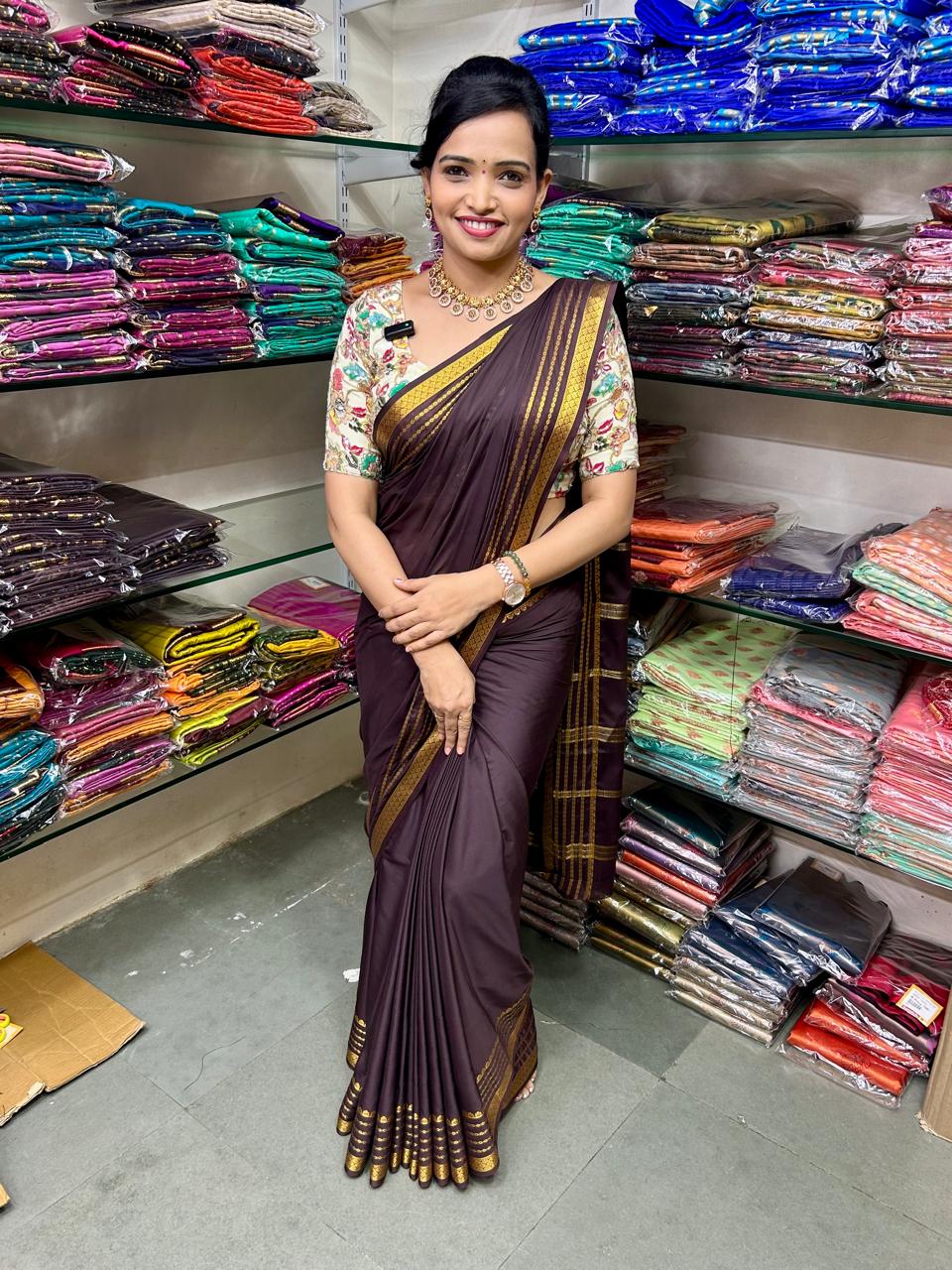 Product Description: Crepe Self Chocolate Blue Saree Plain Running Blouse