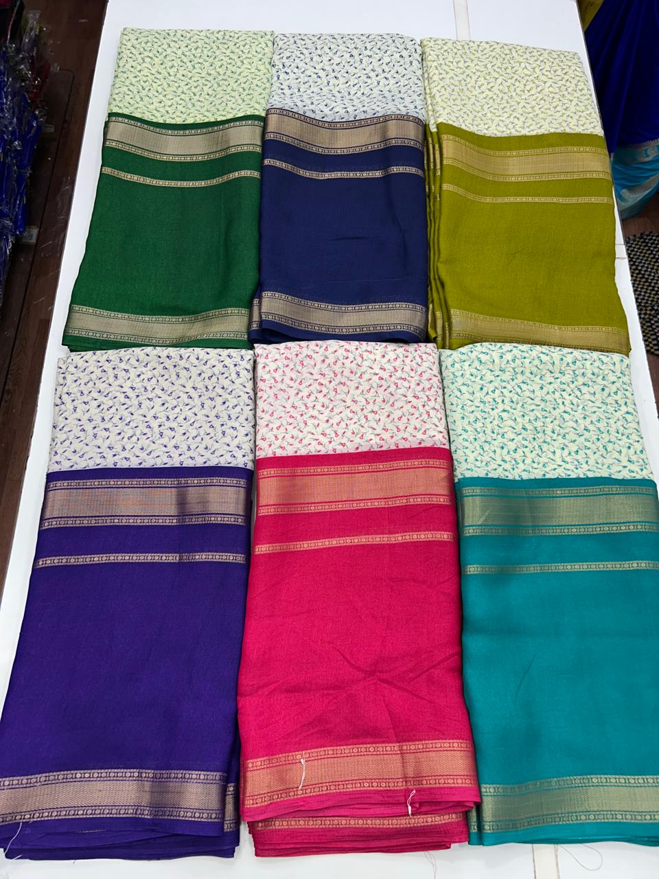 Product Description: Fancy Digital Print Saree Zari Border Contrast Butta Blouse