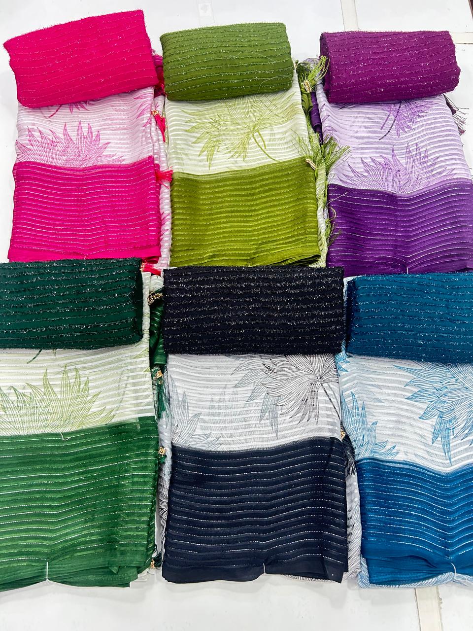 Product Description: Fancy Georgette Flower Butta Saree Contrast Fur Blouse