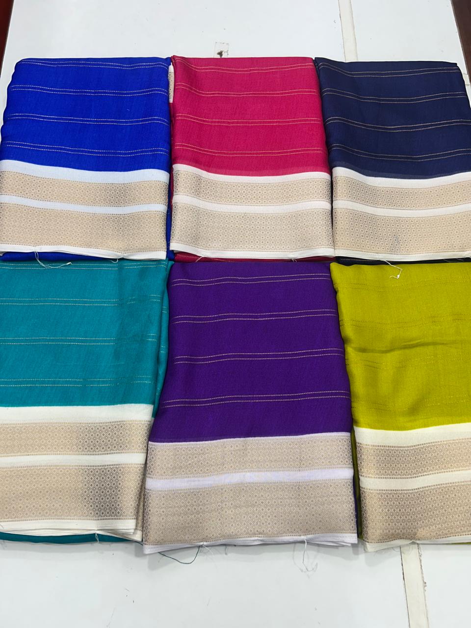 Product Description: Fancy Georgette Lines Saree Bentex Zari Border White Digital Printed Blouse