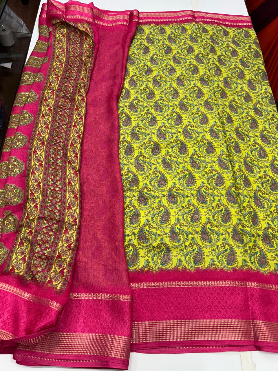 Product Description: Fancy Georgette Printed Saree Jari Border Contrast Blouse