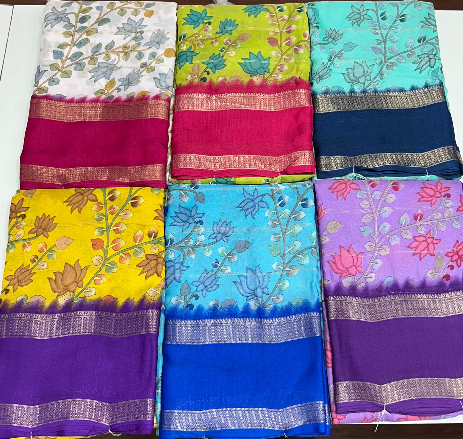 Product Description: Fancy Georgette Saree Digital Print With Contrast Blouse