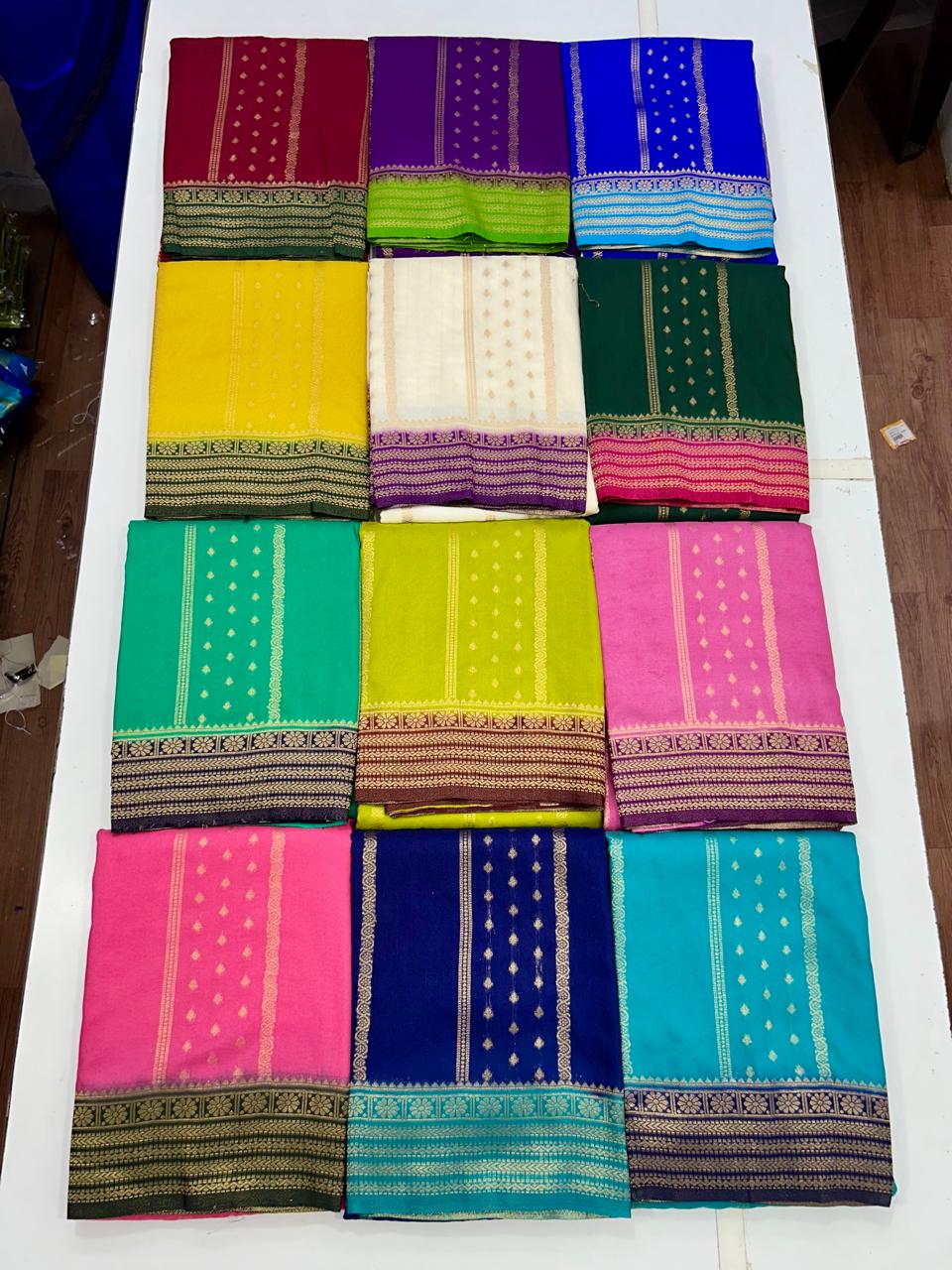 Product Description: Georgette Body Lines Butta Rich Pallu Saree Contrast Border And Contrast Butta Blouse With Border