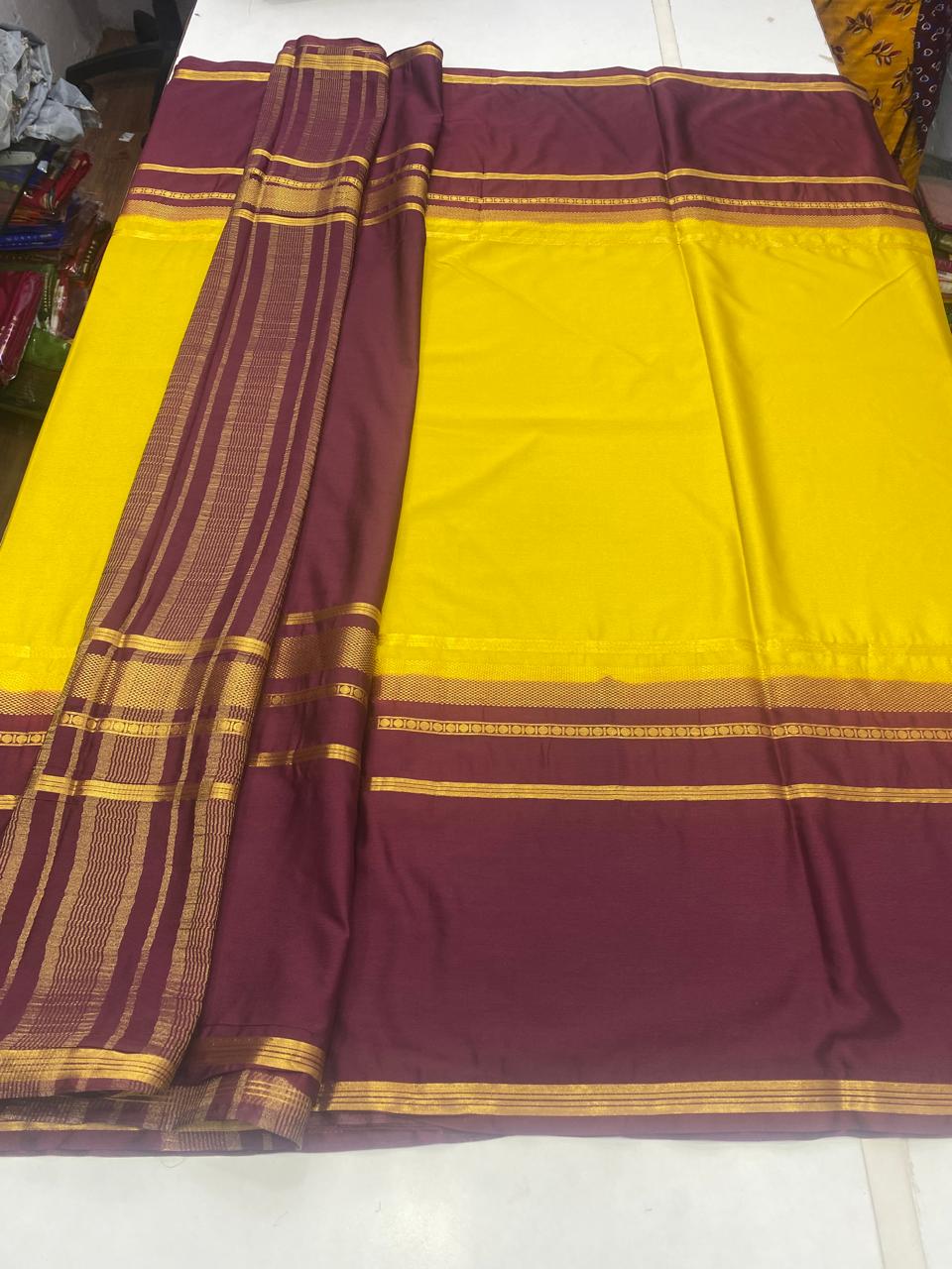 Product Description: Mysore Crepe Big Border Saree Contrast Blouse With Border