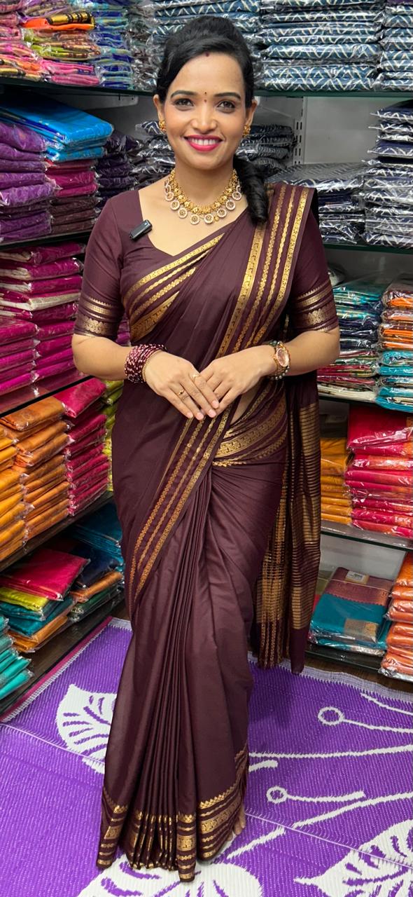 Product Description: Mysore Crepe Royal Blue Saree Plain Running Blouse With Border