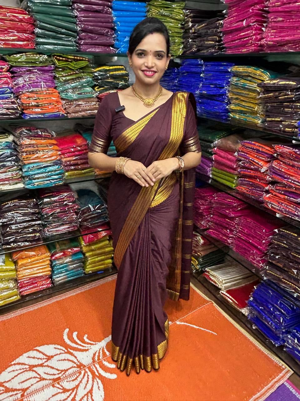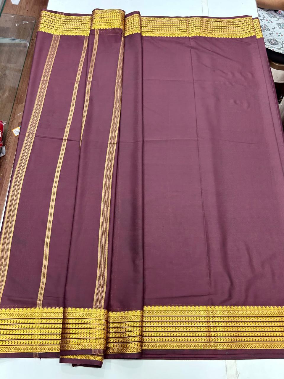 Product Description: Mysore Crepe Chocolate Saree Plain Running Blouse With Border