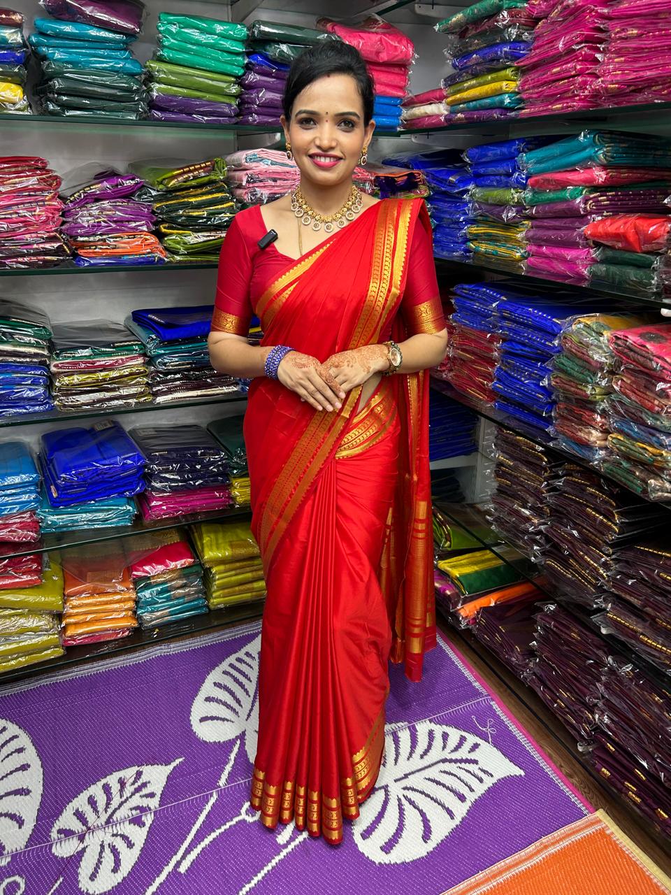 Mysore Crepe Red Saree (2615)