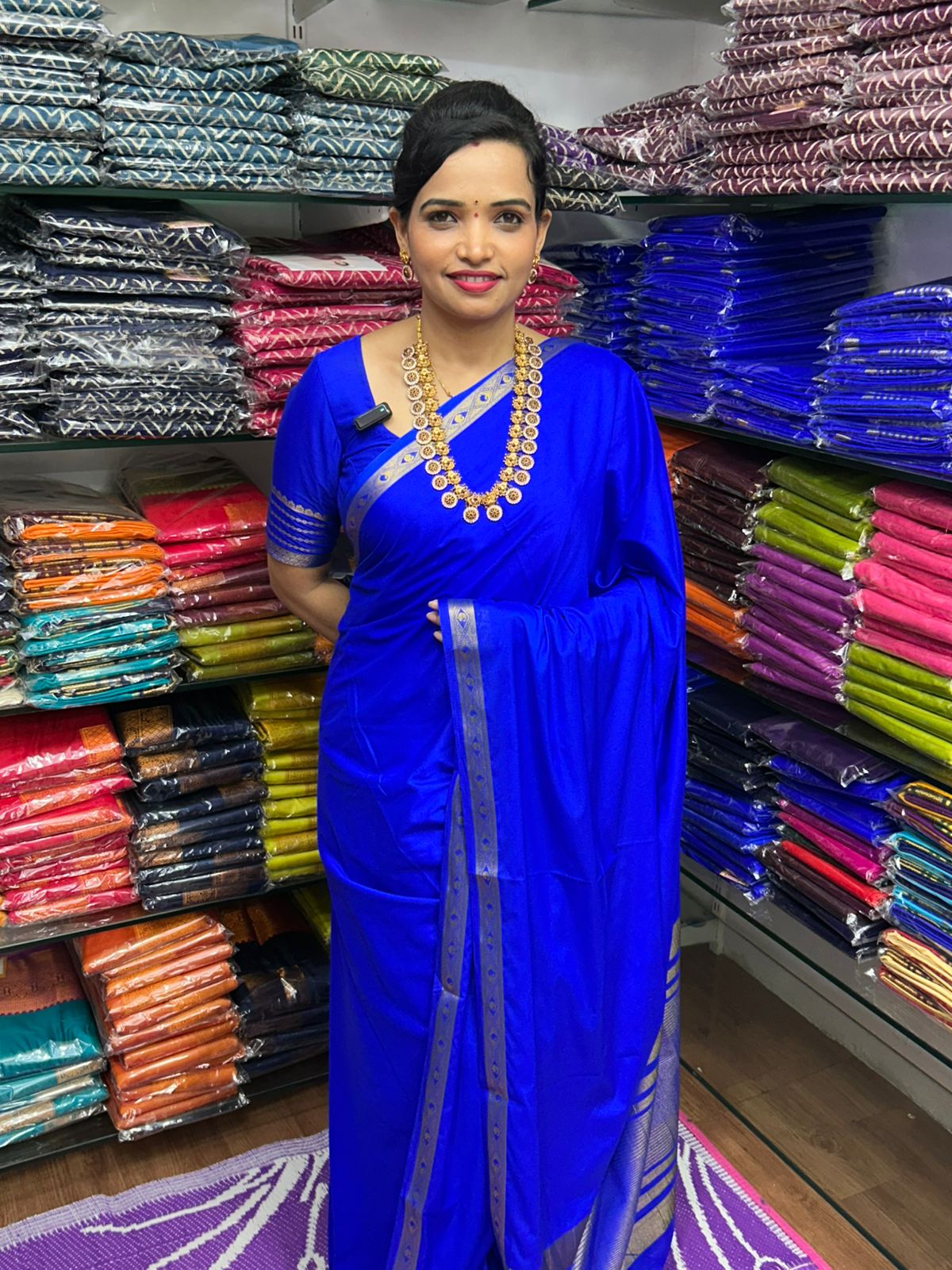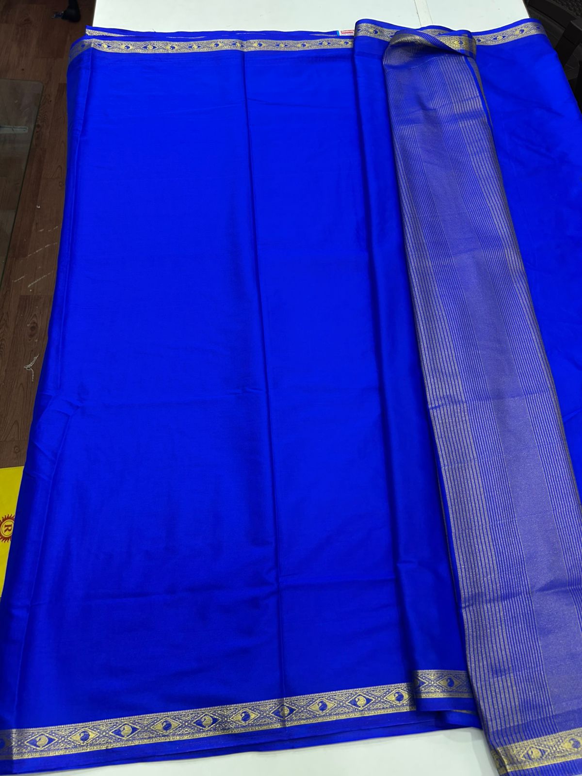 Product Description: Mysore Crepe Royal Blue Saree Plain Running Blouse With Border