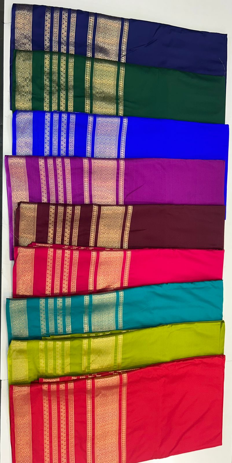 Product Description: Mysore Crepe Self Gold Jari Big Bentex Border Saree Plain Blouse With Border