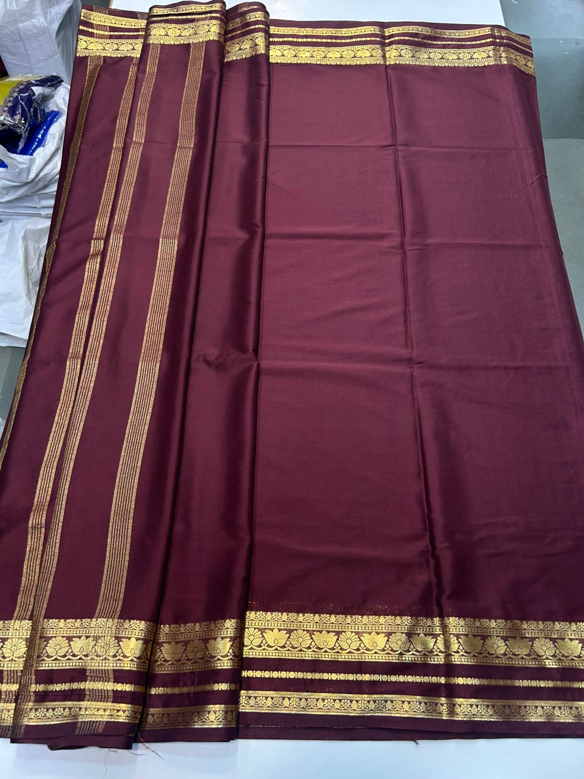 Product Description: Mysore Crepe Self Chocolate Saree Lotus Design With Plain Blouse With Border