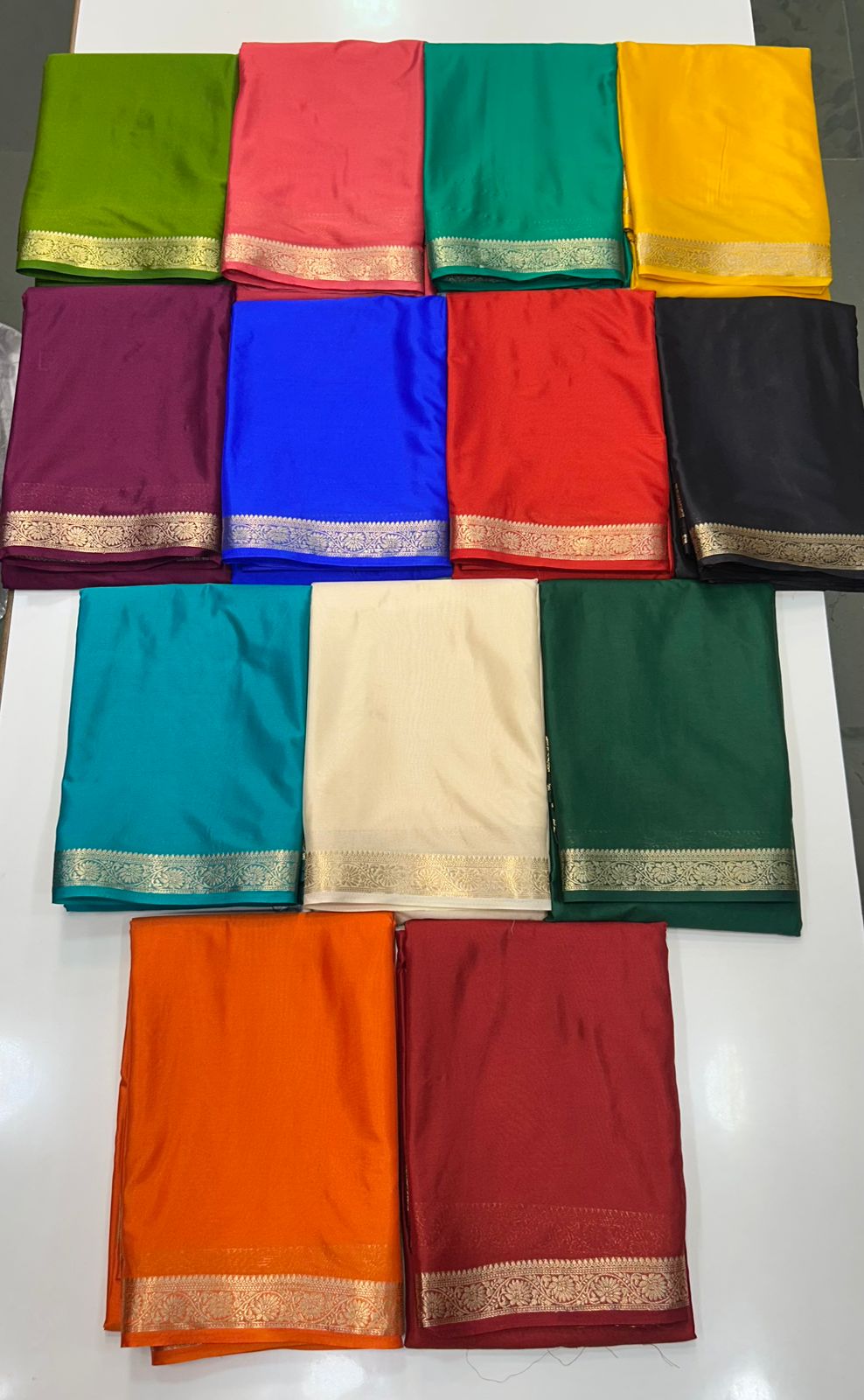 Product Description: Mysore Crepe Self Ivory Jari Saree With Plain Blouse With Border