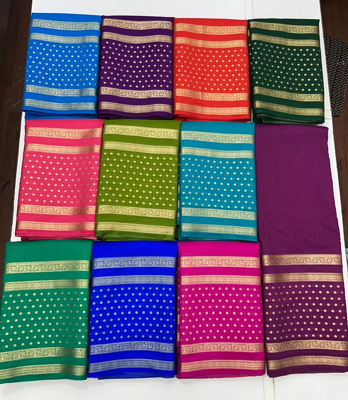 Product Description: Mysore Crepe Pure Border Self Saree Plain Running Blouse With Border