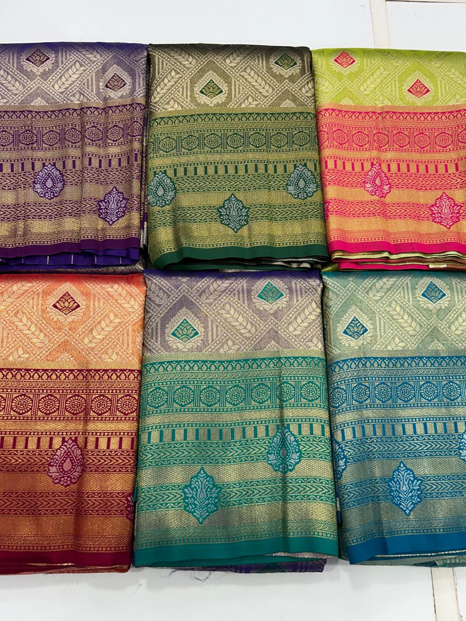 Product Description: Cotton Silk Tissue Meena Saree Jari Border Contrast Butta Blouse