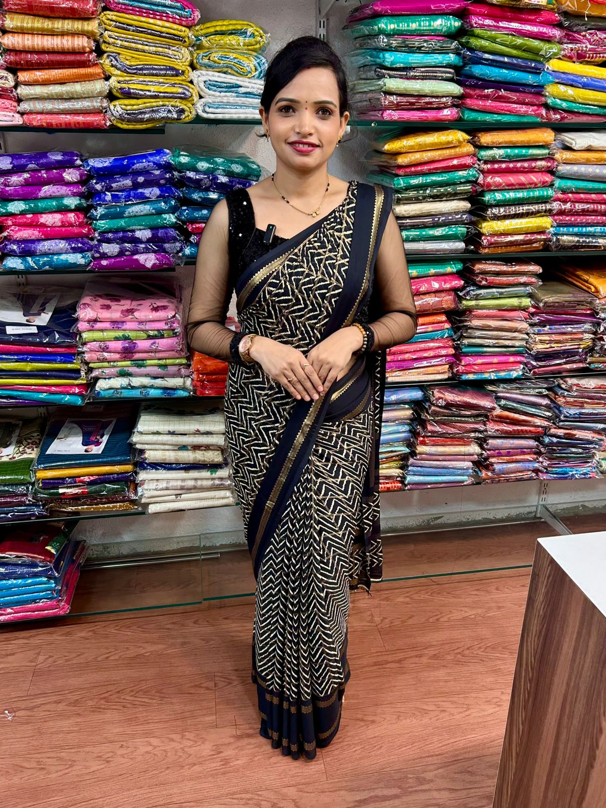 Product Description: Fancy Georgette Saree Foil Print With Self Pain Blouse