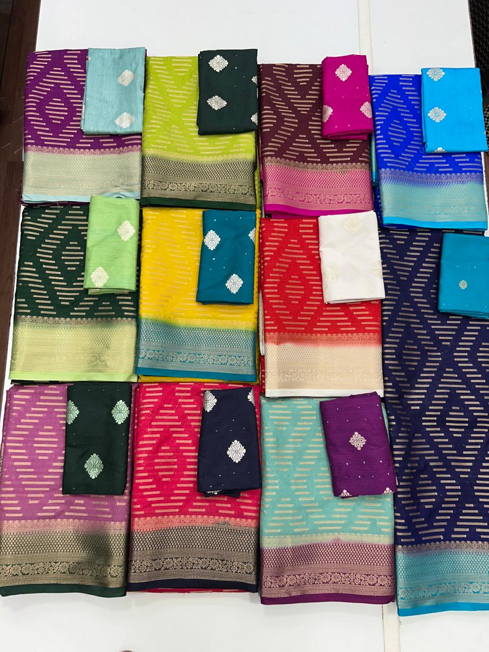 Product Description: Viscos Georgette Jari Diamond Butta Saree Contrast Sequence Blouse
